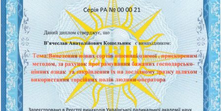 Докладніше...Виведення нових сортів пшениці озимої , прискореним методом, за рахунок програмування бажаних господарсько-цінних ознак та закріплення їх на дослідному зразку шляхом використання торсійних полів людини-оператора.…
