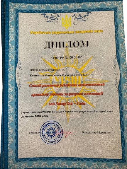 Формула відкриття «Спосіб розвитку резервних можливостей організму людини за рахунок активації зон Захаріна – Геда»